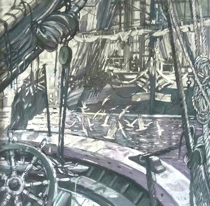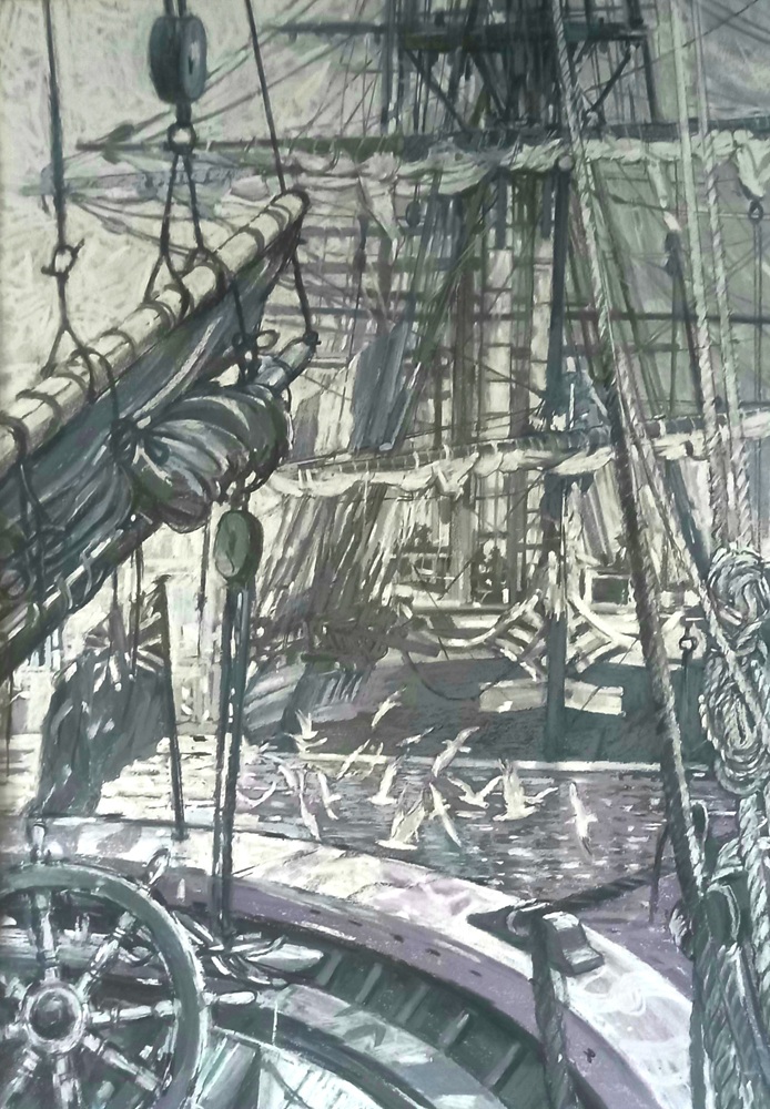 ‘For a ship with her sails furled on her squared yards and reflected from truck to water-line in a smooth gleaming sheet of landlocked harbour, seems, indeed, to a seaman’s eye the most perfect picture of slumbering repose’.